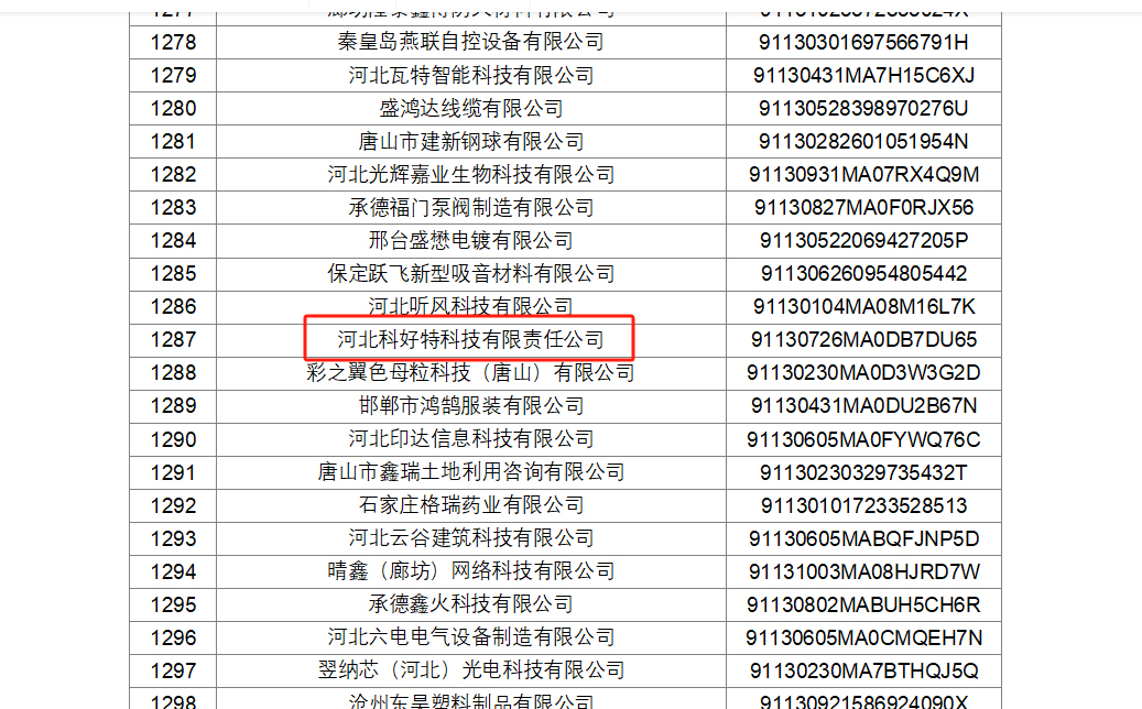 近日,河北省工業和信息化廳公布了2024年第三批省級科技型中小企業名單,科好特科技憑借突出的技術創新能力,成功斬獲"國家級科技型中小企業"認證。這一榮譽標志著公司在專業化、創新化發展道路上邁上新臺階。