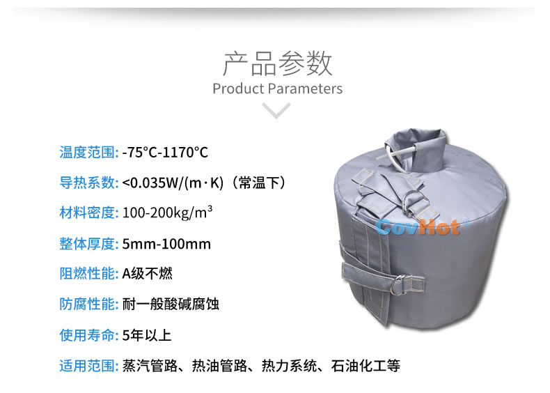 防腐蝕可拆卸法蘭閥門保溫套是目前的閥門管道、設(shè)備用來保溫隔熱的優(yōu)良產(chǎn)品。它可用在不同溫度,不同形狀的管道和冷熱設(shè)備上使用,而且可以異形定制,與設(shè)備完美貼合。對于要經(jīng)常拆卸、維修養(yǎng)護(hù)、清洗的管道設(shè)備尤為實(shí)用。其綜合經(jīng)濟(jì)效益好。是化工領(lǐng)域節(jié)能保溫理想選擇!